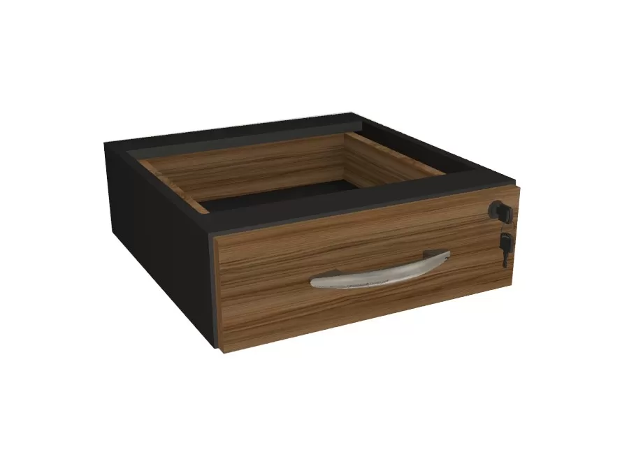 Em MDP de alta densidade, revestimento melaninico, chave para travamento da gaveta.